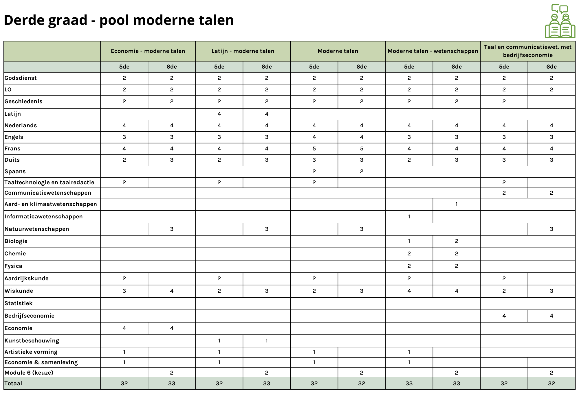 Klik hier voor de lessentabel van alle studierichtingen met de pool moderne talen.